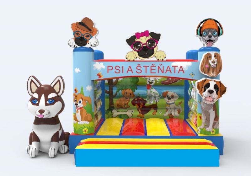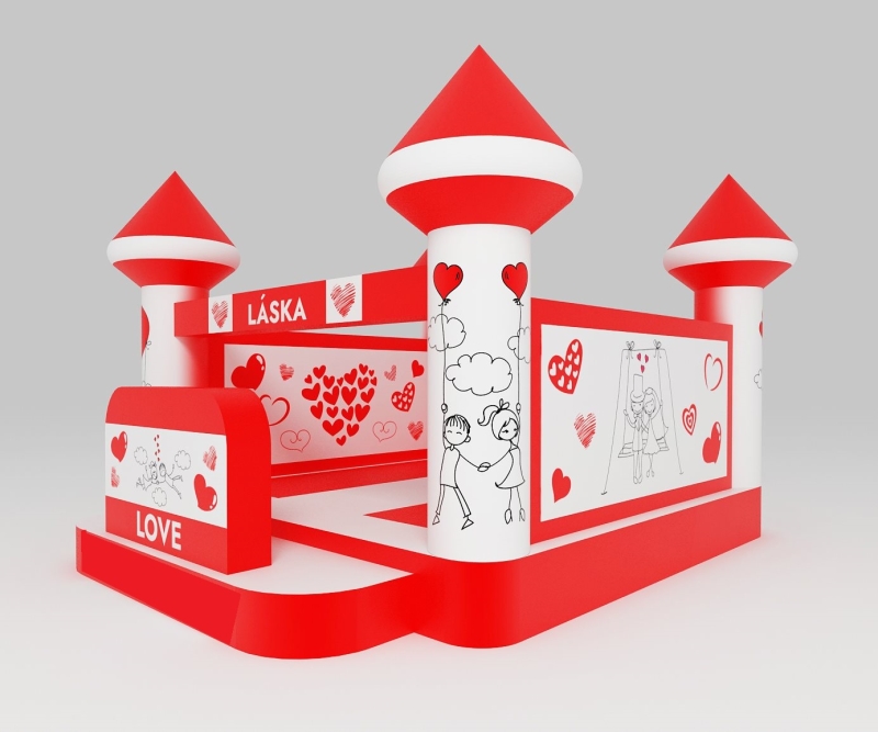 Na svatbu nafukovací svatební bránu a skákací hrad Láska, stany s kočičkami, pejsky a motýli, pirátské centrum, krásnou stodolu nebo kopací šipky.