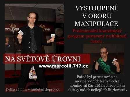 Karel Marcolli je velkým a známým pojmem mezi kouzelníky v České republice. Pochází z rodu kouzelníků, kteří pracují s iluzemi přes půl století. Jeho karetní mikromagie patří mezi absolutně nejlepší v ČR.