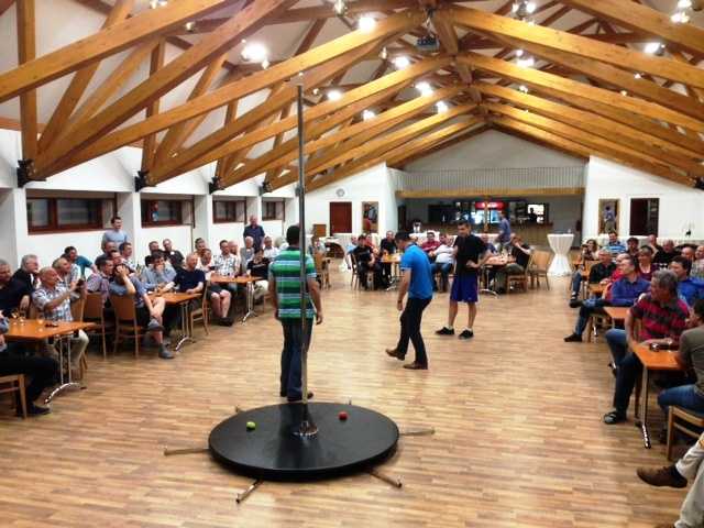 Se souhlasem klienta necháváme do vystoupení exhibici show pole dance – akrobacie na tyči zapojit i hosty.