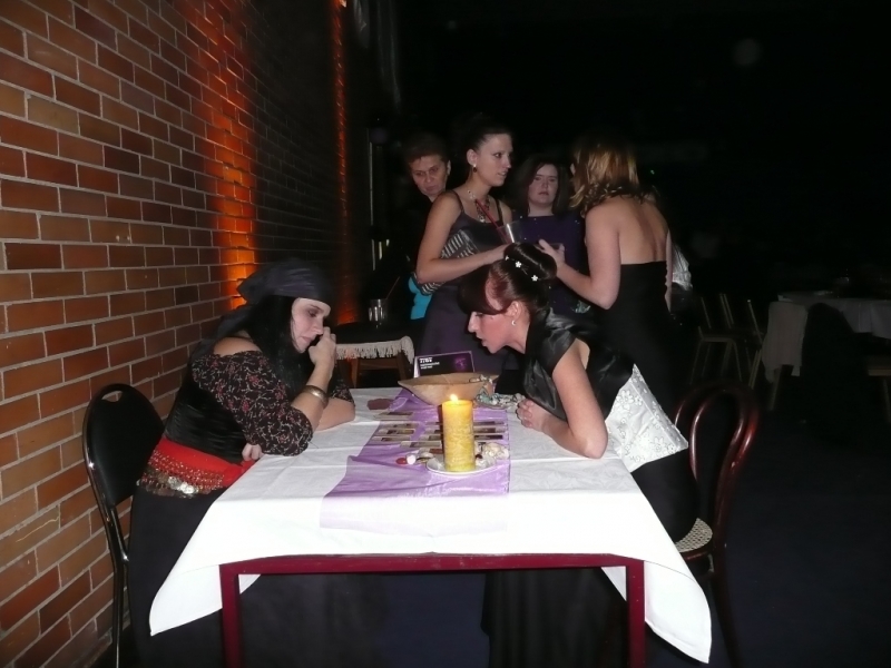 Stanoviště s kartářkou snese stejné atributy, jako stanoviště s karikaturistou. Podmanivé blikotající světlo svíček navodí vynikající atmosféru, kterou jen tak něco nepřekoná. Po celou dobu akce se utvoří fronta, která neskončí. Ženy i muži si nechají vyložit karty dozví se něco o své minulosti, přítomnosti a budoucnosti. Nemusíte se bát, že by hosté odcházeli od stolu na pokraji psychických sil. Naopak jsou přijemně naladěni!