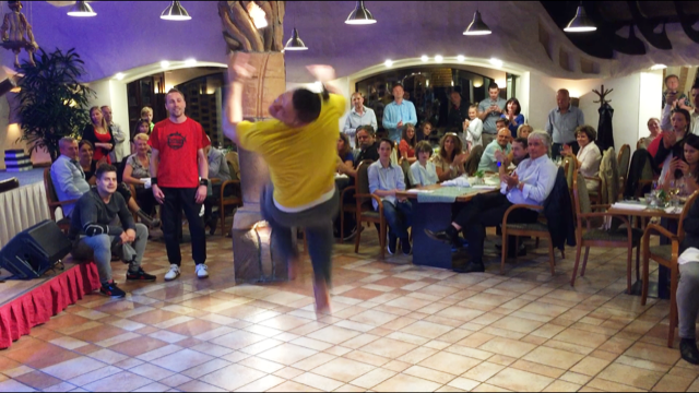 Na vašem večírku jste určitě ještě neměli Break Dance taneční exhibici od profesionálů. Exhibiční cca 20 minutové vystoupení předvedou třetí z Mistrovství Evropy. Break - Dance je akrobatický hip hopový tanec, který má svoje počátky v 70. letech. Jeho vývoj však vůbec není jednoduchý, protože je ovlivňován velkým množstvím tanečních směrů a proudů.