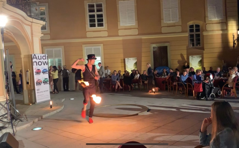 Na místě je potřeba prostor minimálně 6 x 4 metry, ozvučení vycházející zpoza vystupujícího, šatna.