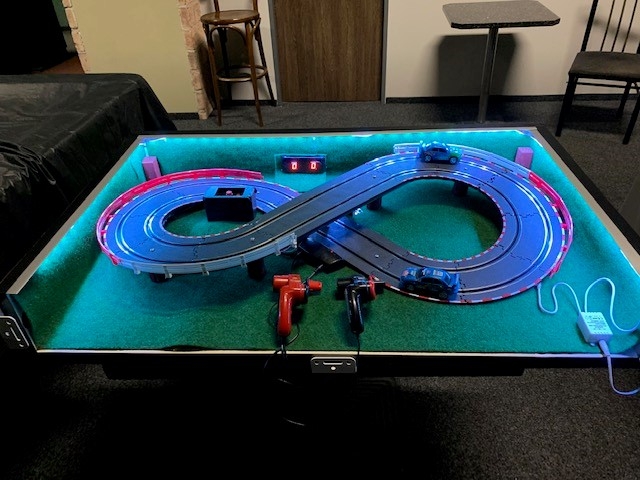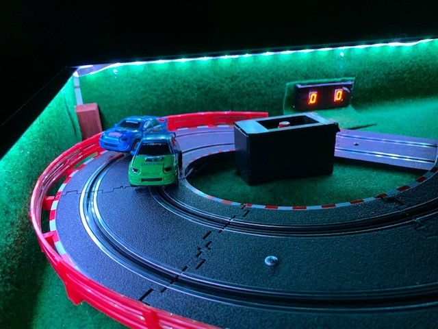 Dvě obrovské výhody této autodráhy, jednak jsou to její rozměry 100 x 60 cm. Vejde se prostě všude. Druhou výhodou je nízká cena za zapůjčení.